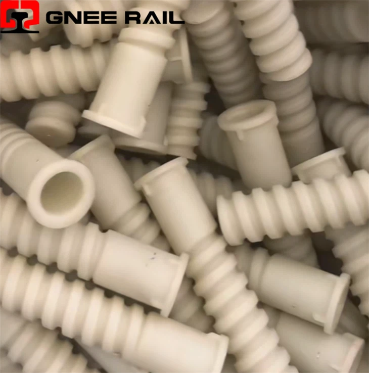 The rail plastic dowel is a pre-embedded assembly, it is usually fixed in the pre-products (such as cement sleepers, bridges, buildings, etc.), and the threads on its surface are fused with the preform. In general, plastic dowel is used with the rail bolts or screw spike, for fastening other objects. Material: nylon glass fiber (PA66 + GF), plastic (HDPE), and so on.